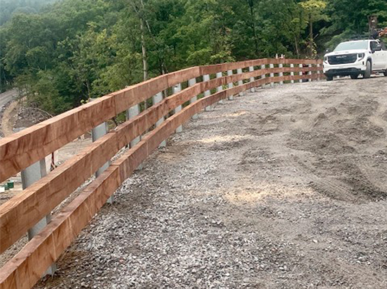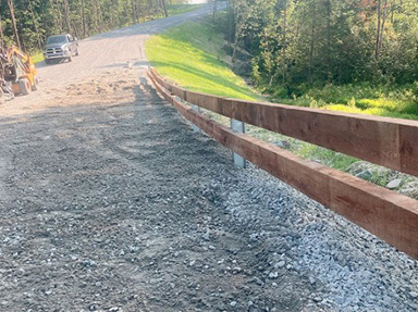 Note: These new systems are not approved or licenced by the Ministère des Transports du Québec, therefore, they cannot be used on highways or numbered roads with a speed limit above 50 km/h. They are reserved for scenic roads or roads with a speed limit of 50 km/h and less only. It is important that the soil under the guardrails be suitable to their installation: absence of very large rocks or construction debris, any other material unsuitable for the installation of steel or wood posts. The layout must also provide a minimum clearance of 500 mm behind the guardrail to ensure stability. They cannot be installed to mark a cliff or to delineate a lookout overhanging a steep slope. No reflectors are provided for these systems.
